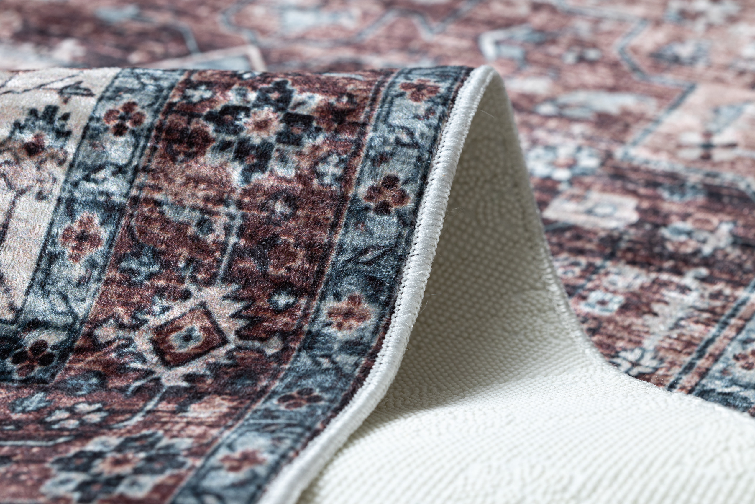 - Fundul antiderapant al covorului va asigura siguranta chiar si pe podele alunecoase si umede;